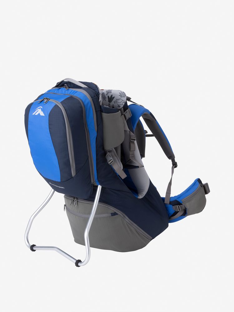 マックパック バムースの最大の特徴は自立式フレーム、安定した背負い心地、着脱式デイパックです。厚みのあるパッドを各所に配置することで、親の腰や子どもの座り心地への負担を軽減しています。長時間の行動や整備されていない登山道でも安心して使える、堅牢さを重視した設計です。