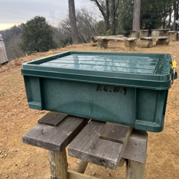 富士山が見えるらしい、ひらけた所に記録帳があります。本日は雲が広がっていた為ぜーんぜん見えませんでした