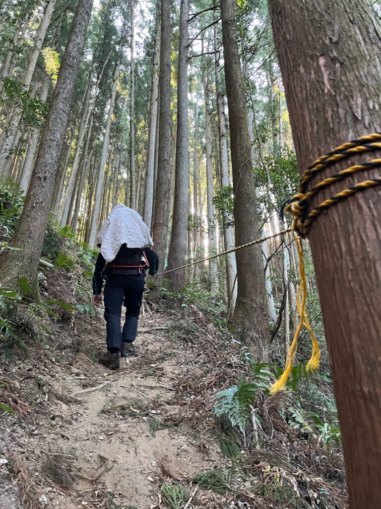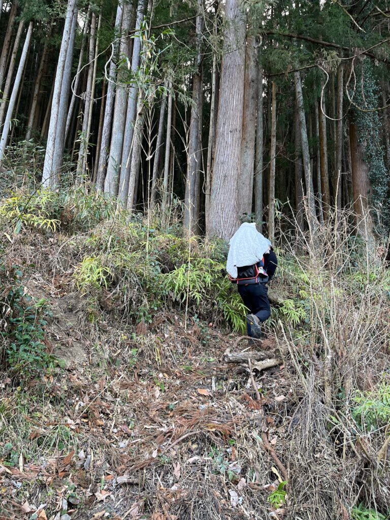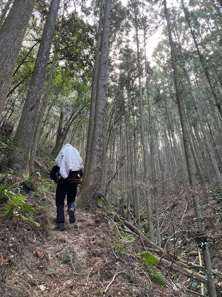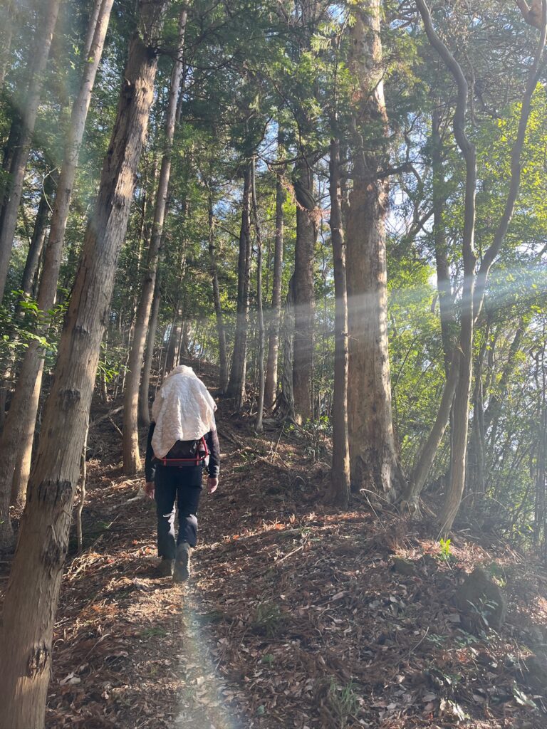 奥武蔵らしい人工林のちょっと急な細道を登ります