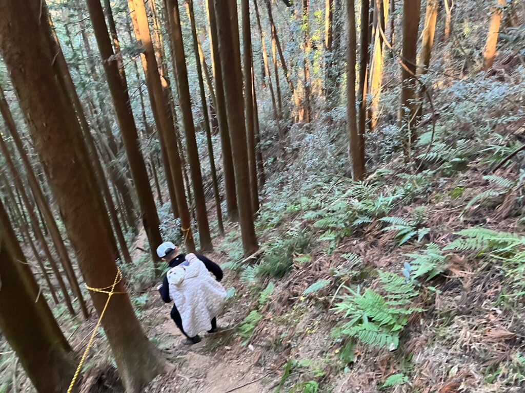 途中ロープもあり。斜度もあるので少し滑りやすいです。子(隊長)は揺れでご機嫌です🫨